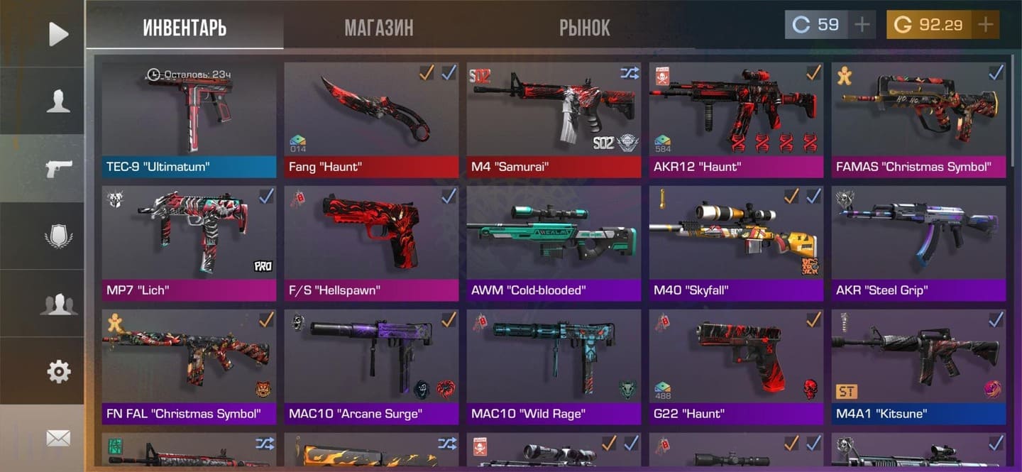 💰Голда: 92.29; 🔪Ножи: Fang "Haunt" ⭐️Редкие скины: 6